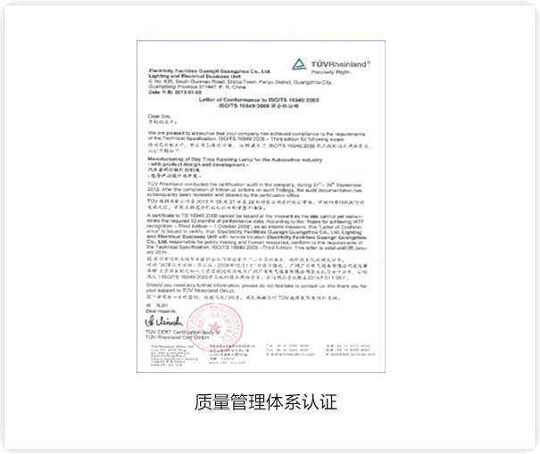 2015年通過(guò)IS09001質(zhì)量認(rèn)證,TS16949等體系認(rèn)證,代表著公司已步入規(guī)范化,標(biāo)準(zhǔn)化,科學(xué)化的現(xiàn)代企業(yè)管理軌道,進(jìn)一步的保障了工程質(zhì)量,促進(jìn)公司的快速發(fā)展。